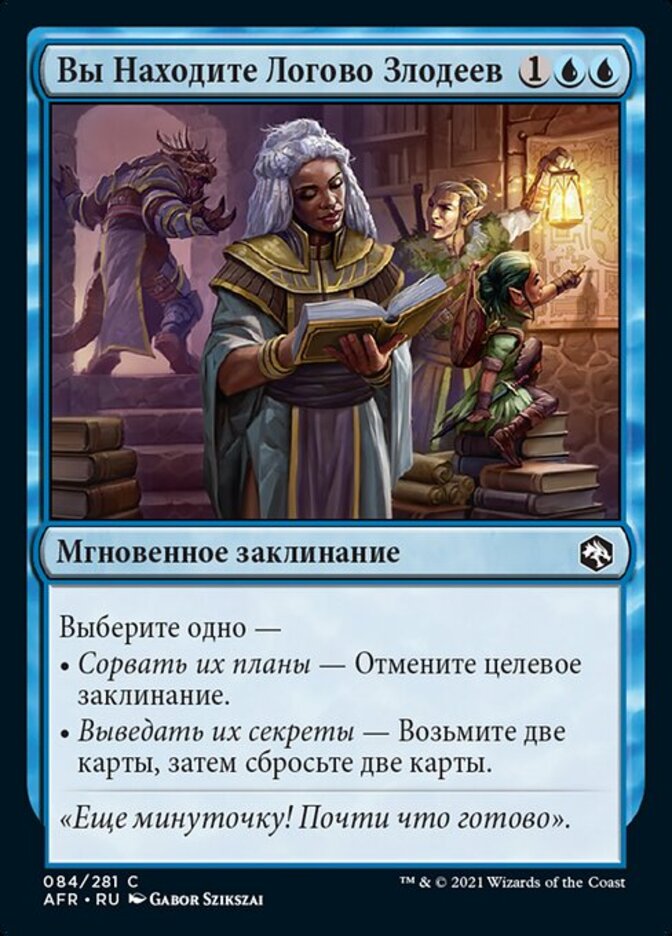 | Rules | Choose one — • Foil Their Scheme — Counter target spell. • Learn Their Secrets — Draw two cards, then discard two cards. |