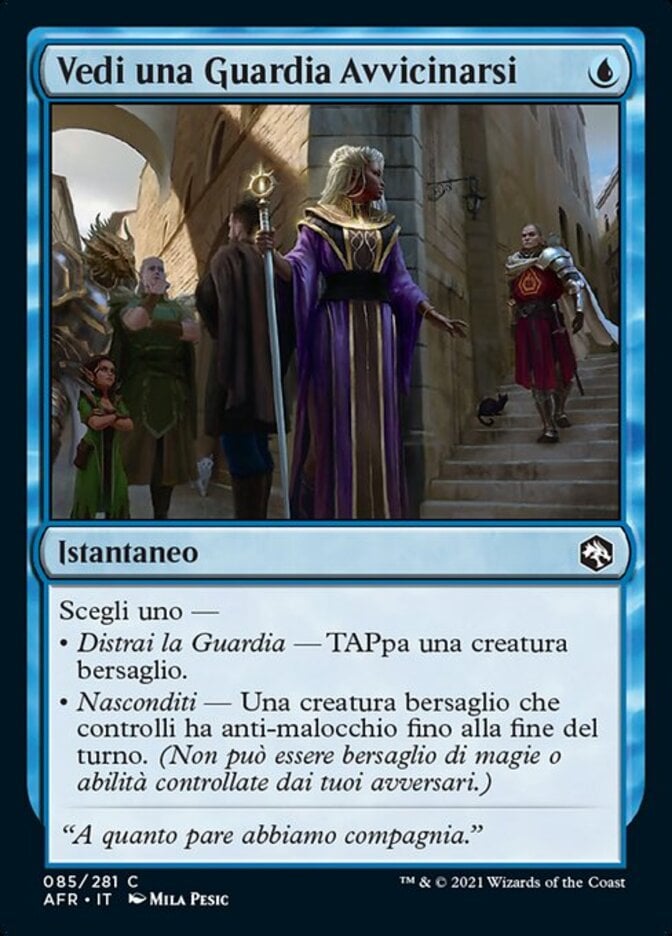 | Rules | Choose one — • Distract the Guard — Tap target creature. • Hide — Target creature you control gains hexproof until end of turn. (It can't be the target of spells or abilities your opponents control.) |