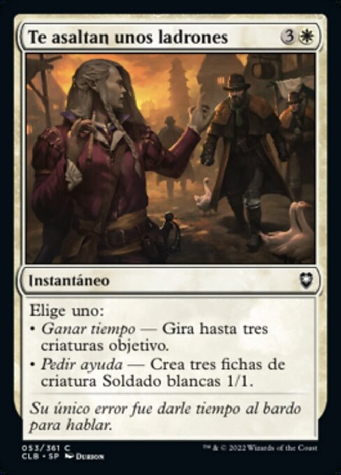 | Rules | Choose one — • Stall for Time — Tap up to three target creatures. • Call for Aid — Create three 1/1 white Soldier creature tokens. |