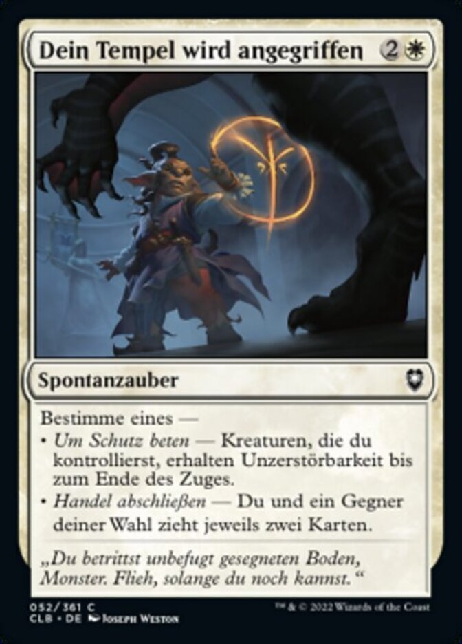 | Rules | Choose one — • Pray for Protection — Creatures you control gain indestructible until end of turn. • Strike a Deal — You and target opponent each draw two cards. |