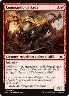 | Rules | First strike Cohort — , Tap an untapped Ally you control: Zada's Commando deals 1 damage to target opponent or planeswalker. |
