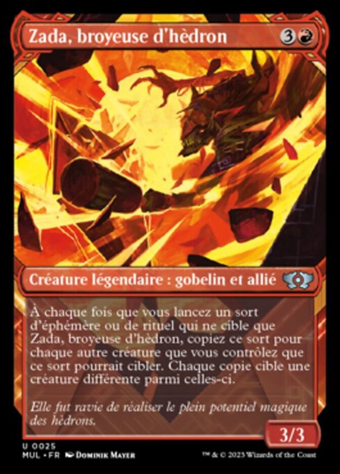 | Rules | Whenever you cast an instant or sorcery spell that targets only Zada, Hedron Grinder, copy that spell for each other creature you control that the spell could target. Each copy targets a different one of those creatures. |