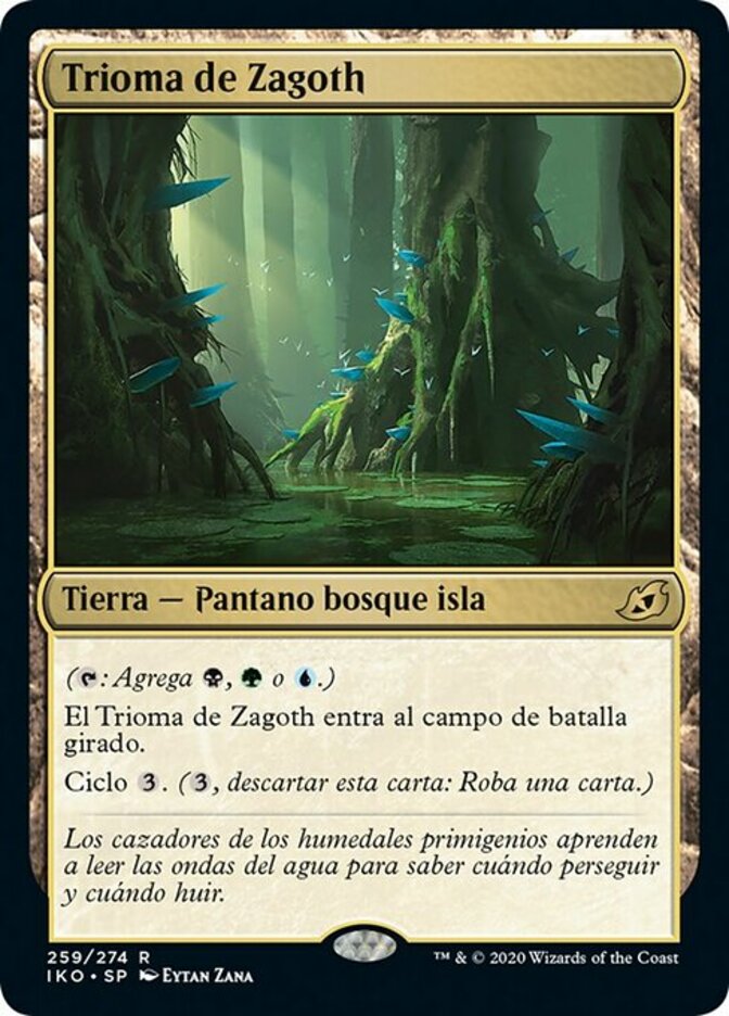 | Rules | (: Add , , or .) Zagoth Triome enters the battlefield tapped. Cycling (, Discard this card: Draw a card.) |