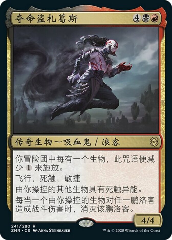 | Rules | This spell costs less to cast for each creature in your party. Flying, deathtouch, haste Other creatures you control have deathtouch. Whenever a creature you control deals combat damage to a planeswalker, destroy that planeswalker. |