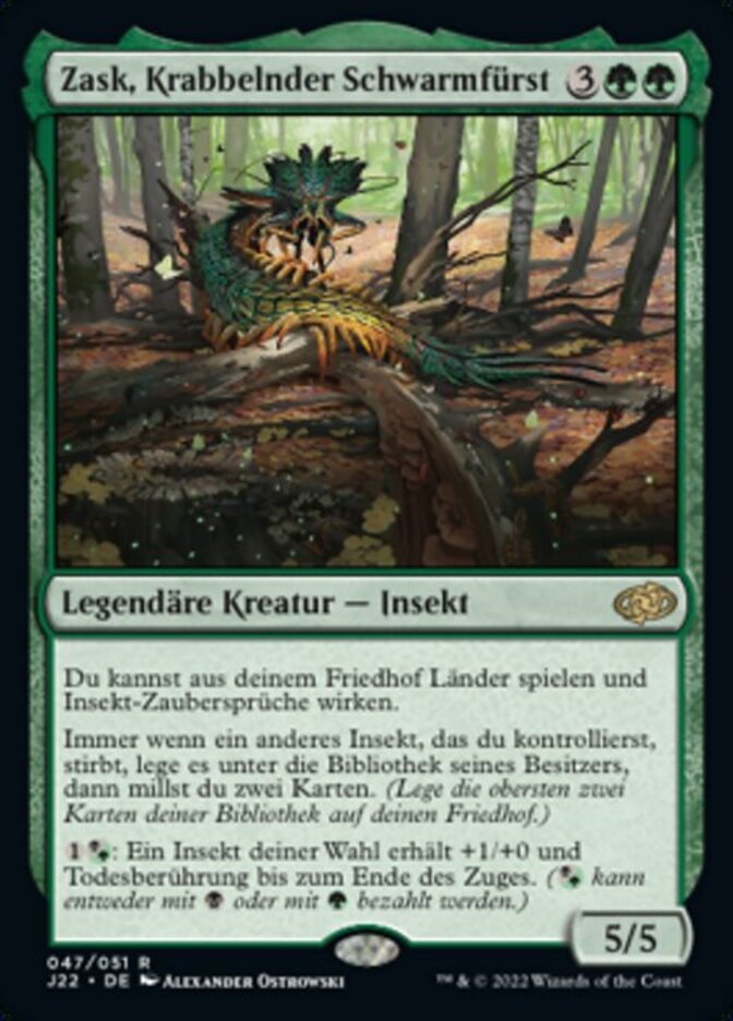 | Rules | You may play lands and cast Insect spells from your graveyard. Whenever another Insect you control dies, put it on the bottom of its owner's library, then mill two cards. (Put the top two cards of your library into your graveyard.) : Target Insect gets +1/+0 and gains deathtouch until end of turn. ( can be paid with either or .) |