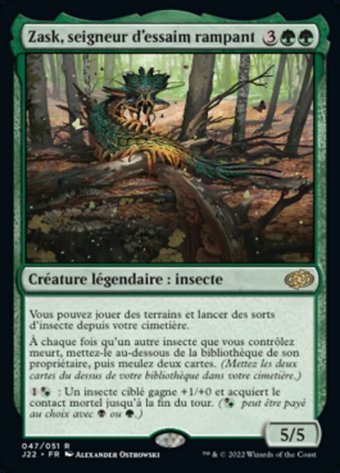 | Rules | You may play lands and cast Insect spells from your graveyard. Whenever another Insect you control dies, put it on the bottom of its owner's library, then mill two cards. (Put the top two cards of your library into your graveyard.) : Target Insect gets +1/+0 and gains deathtouch until end of turn. ( can be paid with either or .) |