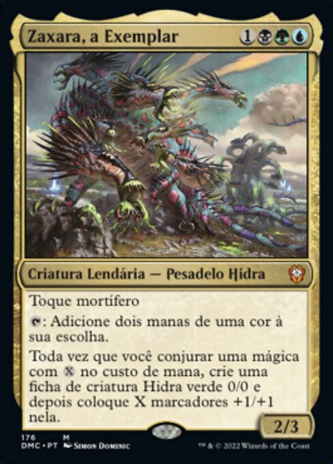 | Rules | Deathtouch : Add two mana of any one color. Whenever you cast a spell with in its mana cost, create a 0/0 green Hydra creature token, then put X +1/+1 counters on it. |