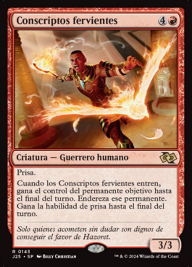 | Rules | Haste When Zealous Conscripts enters the battlefield, gain control of target permanent until end of turn. Untap that permanent. It gains haste until end of turn. |