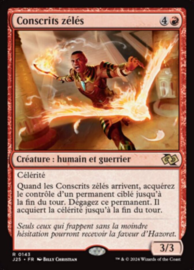 | Rules | Haste When Zealous Conscripts enters the battlefield, gain control of target permanent until end of turn. Untap that permanent. It gains haste until end of turn. |