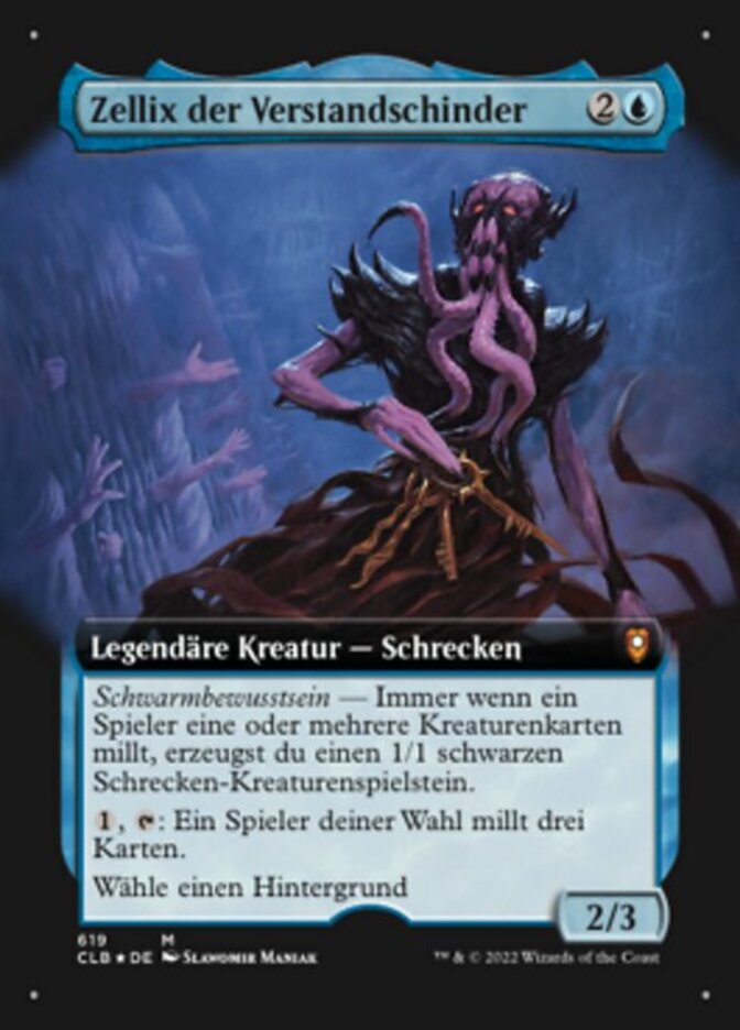 | Rules | Hive Mind — Whenever a player mills one or more creature cards, you create a 1/1 black Horror creature token. , : Target player mills three cards. Choose a Background (You can have a Background as a second commander.) |