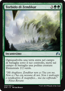 | Flavor | "I was wrong. Zendikar isn't after me. It isn't after any of us. It's not evil or vengeful. It's magnificent . . . but it's in pain."-Nissa Revane |