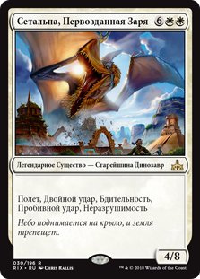 | Rules | Flying, double strike, vigilance, trample, indestructible |