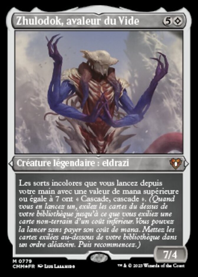 | Rules | Colorless spells you cast from your hand with mana value 7 or greater have "Cascade, cascade." (When you cast one, exile cards from the top of your library until you exile a nonland card that costs less. You may cast it without paying its mana cost. Put the exiled cards on the bottom of your library in a random order. Then do it again.) |