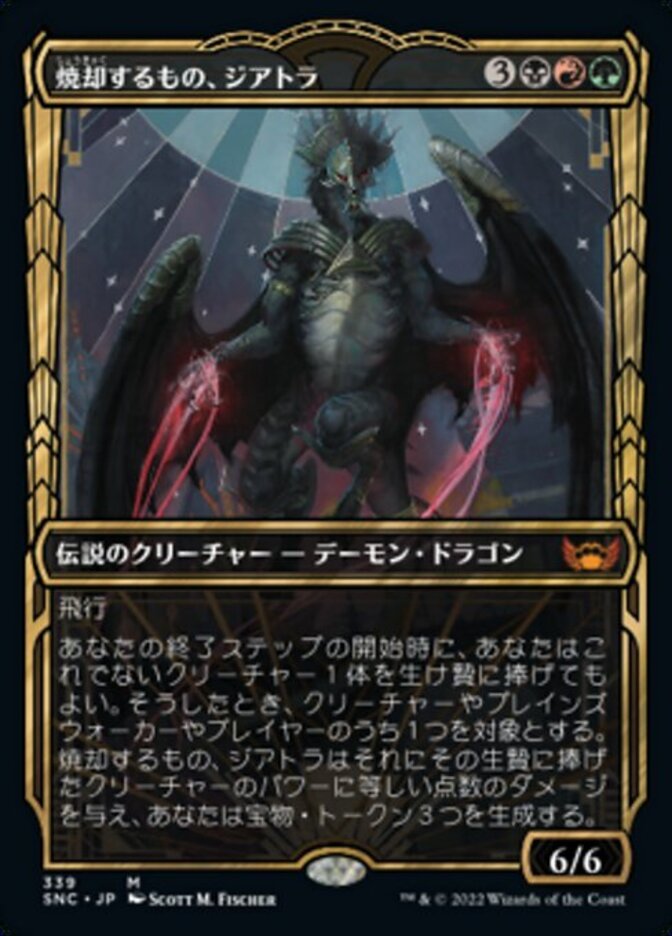 | Rules | Flying At the beginning of your end step, you may sacrifice another creature. When you do, Ziatora, the Incinerator deals damage equal to that creature's power to any target and you create three Treasure tokens. |
