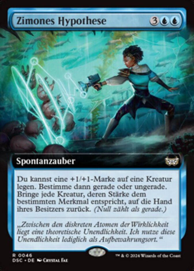 | Rules | You may put a +1/+1 counter on a creature. Then choose odd or even. Return each creature with power of the chosen quality to its owner's hand. (Zero is even.) |