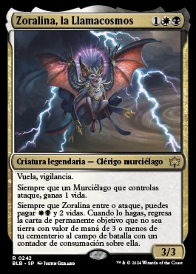 | Rules | Flying, vigilance Whenever a Bat you control attacks, you gain 1 life. Whenever Zoraline enters or attacks, you may pay and 2 life. When you do, return target nonland permanent card with mana value 3 or less from your graveyard to the battlefield with a finality counter on it. |