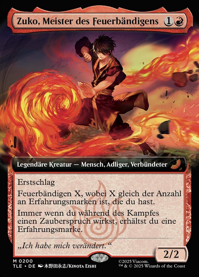 | Rules | First strike Firebending X, where X is the number of experience counters you have. (Whenever this creature attacks, add X . This mana lasts until end of combat.) Whenever you cast a spell during combat, you get an experience counter. |