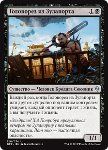| Flavor | "Eldrazi? Ha! Try walking through Zulaport at night with your pockets full. Now that's dangerous." |