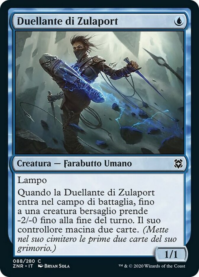 | Rules | Flash When Zulaport Duelist enters the battlefield, up to one target creature gets -2/-0 until end of turn. Its controller mills two cards. (They put the top two cards of their library into their graveyard.) |