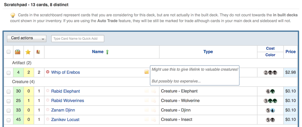Bulk add cards that are missing in a deck to your wishlist.